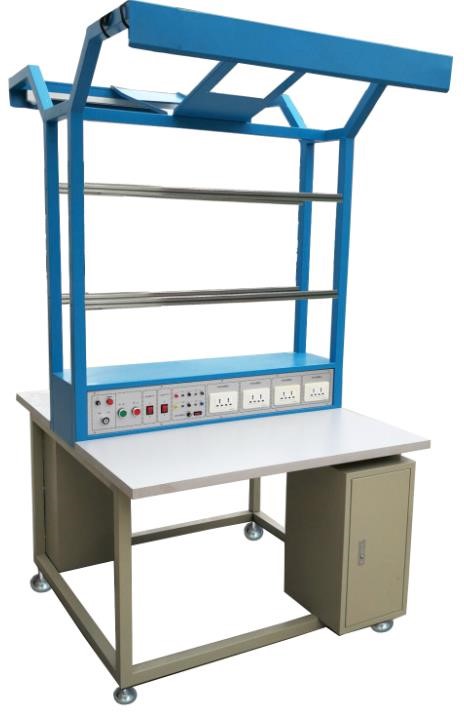 該實(shí)驗臺底下設有單相相二線(xiàn)及"地"線(xiàn)(共3線(xiàn))輸入接口,并配有啟動(dòng)停止開(kāi)關(guān),指示燈,保險座。