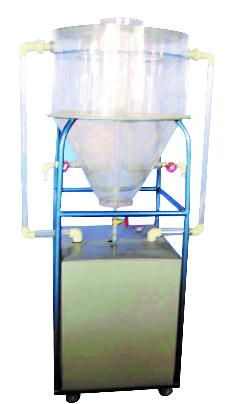 有機玻璃水力循環(huán)澄清池、PVC水箱、不銹鋼進(jìn)水泵、轉子流量計、中心導流調節器、進(jìn)水噴嘴、污泥導流器、污泥斗、排泥閥、出水平衡槽、不銹鋼臺架、排水管、防污電器控制箱、配套連接管閥。