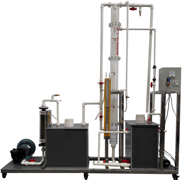 有機玻璃三段填料塔、液體緩沖箱、氣體緩沖箱、進(jìn)出口風(fēng)管、渦輪氣泵、噴淋系統、加液泵、氣體流量計、液體流量計、SO2氣體鋼瓶及減壓器(用戶(hù)自備)、SO2氣體流量計、電控箱、管道閥門(mén)、不銹鋼支架。