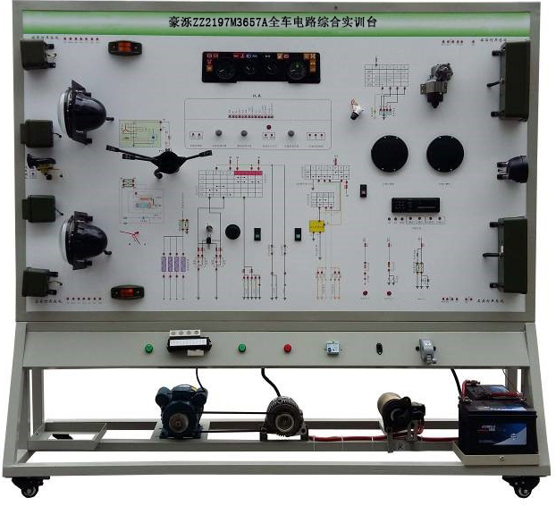 豪濼ZZ2197M3657A全車(chē)電路綜合實(shí)訓設備采用 全新豪濼ZZ2197M3657A 柴油機整車(chē)電器實(shí)物為基礎,充分展示汽車(chē)儀表系統、燈光系統、雨刮系統、喇叭系統、發(fā)動(dòng)機電器系統、起動(dòng)系統和充電系統等汽車(chē)電器各系統的組成結構樣圖和工作過(guò)程。