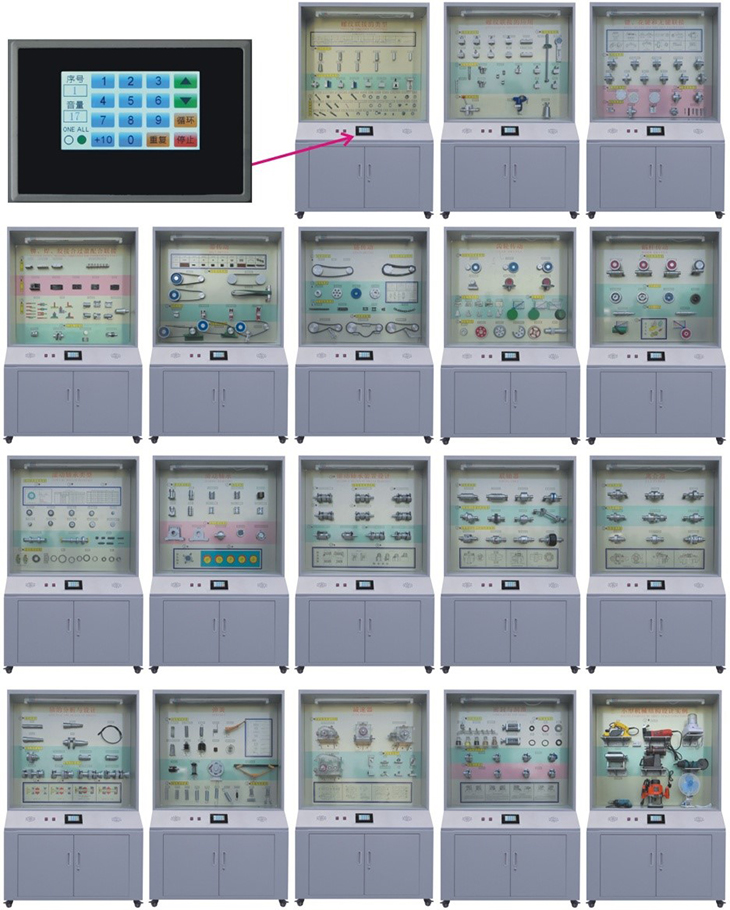 機械設計零件陳列柜,是根據機械設計(零件)課程基本要求設計制造的實(shí)驗設備。陳列柜通過(guò)機械零件模型或實(shí)物,配合相應的圖文資料,形象地展示與解說(shuō)機械設計的基本知識,加強學(xué)生對通用機械零件的類(lèi)型、結構特點(diǎn)及其設計的感性認知,為進(jìn)一步學(xué)習機械設計奠定基礎。