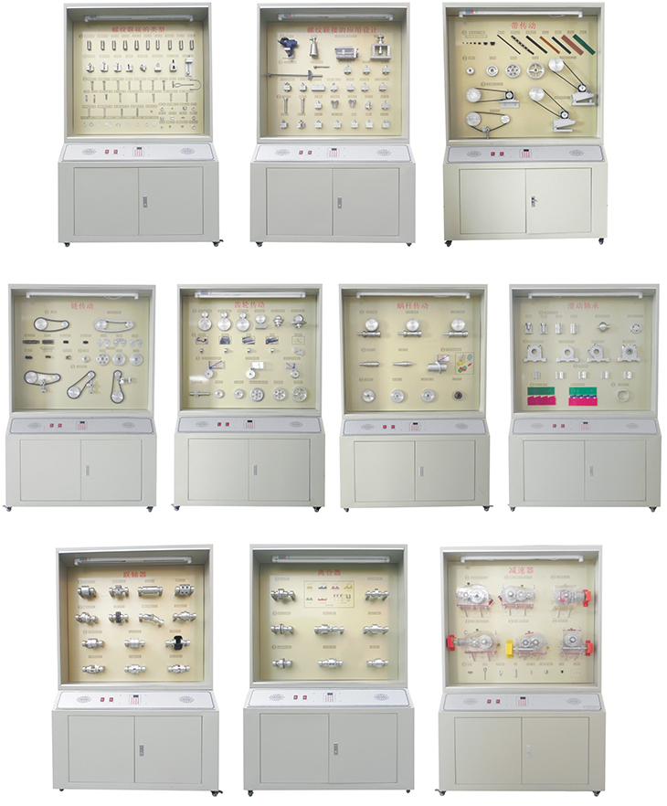 機械零件設計陳列柜本柜是在SBSJ-18型陳列柜基礎上通過(guò)精選陳列內容后,設計生產(chǎn)的陳列柜,其優(yōu)點(diǎn)是較大的減少陳列柜的占地面積,特點(diǎn)適用于實(shí)驗室面積較緊湊的實(shí)驗室陳列。具有多功能語(yǔ)音播放控制系統。語(yǔ)音解說(shuō)同步演示,采用單獨驅動(dòng)由電腦或電子設備控制運轉演示,可由遙控控制順序自動(dòng)運行講解,又能根據教材、教學(xué)需要而遙控任意選擇還是單獨演示。本陳列柜主要展示,聯(lián)接傳動(dòng),軸承及其他通用零件的基本類(lèi)型結構形式和設計應用知識。