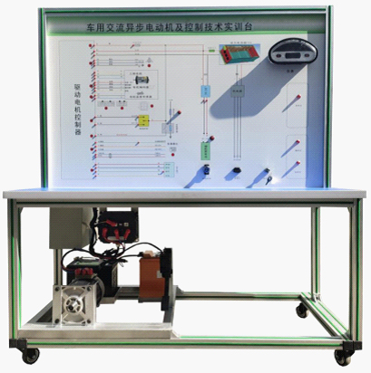 檢測控制面板(裝有各種檢測端子,1448×940mm彩色電路圖和工作原理示意圖)、組合儀表、點(diǎn)火開(kāi)關(guān)、電機控制器、車(chē)載充電器與充電接口、DC-DC轉換器、鋰動(dòng)力電池組、電動(dòng)車(chē)電機(交流異步電動(dòng)機)、剎車(chē)開(kāi)關(guān)、檔位開(kāi)關(guān)、油門(mén)控制裝置、大電流繼電器、電源總開(kāi)關(guān)、急停開(kāi)關(guān)、輔助蓄電池(12V45AH)、一體化全鋁合金型材搭建的移動(dòng)臺架(1500×700×1700mm (帶自鎖腳輪裝置,帶安裝檢測端子的原理面板,面板1448×940mm)、設備操作說(shuō)明書(shū)。