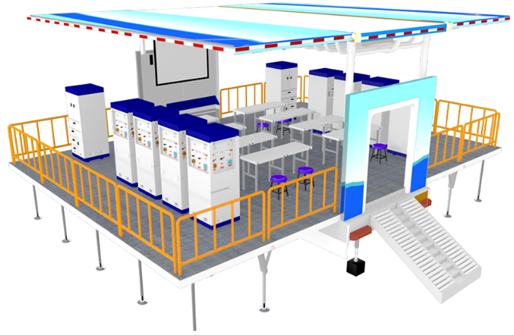 車(chē)體展開(kāi)后實(shí)訓平臺的面積可以達到70平方米,可以滿(mǎn)足預定專(zhuān)業(yè)20多人的培訓需求。