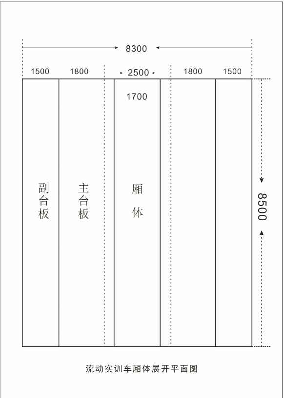 流動(dòng)培訓鑒定車(chē)項目主要由流動(dòng)車(chē)和培訓模塊系統兩大部分組成。整車(chē)是由一種車(chē)廂式運輸車(chē)底盤(pán)基礎上加裝專(zhuān)用設施改裝而成的專(zhuān)用車(chē)。車(chē)體為廂式,左、右側廂板可折疊,展開(kāi)為翼型。車(chē)廂地板采用30mm