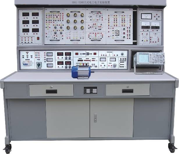 立式電工電子實(shí)驗裝置,立式電工電子實(shí)驗設備,電工電子實(shí)驗臺具有較完善的安全保護措施,較齊全的功能。電工、電氣控制實(shí)驗器件采用適應性強的模塊式掛箱;在實(shí)驗屏上完成實(shí)驗,實(shí)驗方法靈活,動(dòng)手能力強,實(shí)驗連線(xiàn)接點(diǎn)接觸可靠,符合不同深度,不同廣度的教學(xué)要求。數電、模電在九孔通用電路板掛箱上完成,根據實(shí)驗復雜程度選取掛箱個(gè)數,根據實(shí)驗電路在通用電路板上拼插實(shí)驗電路,實(shí)驗元件制成透明創(chuàng )新模塊,直觀(guān)性好,盒蓋印有永不褪色元件符號,線(xiàn)條清晰美觀(guān)。盒體與盒蓋結合采用較科學(xué)的壓卡式結構,維修、更換元件拆裝方便。該實(shí)驗臺結構合理,學(xué)?呻S時(shí)按需要增添新的模塊掛箱,靈活、經(jīng)濟。
