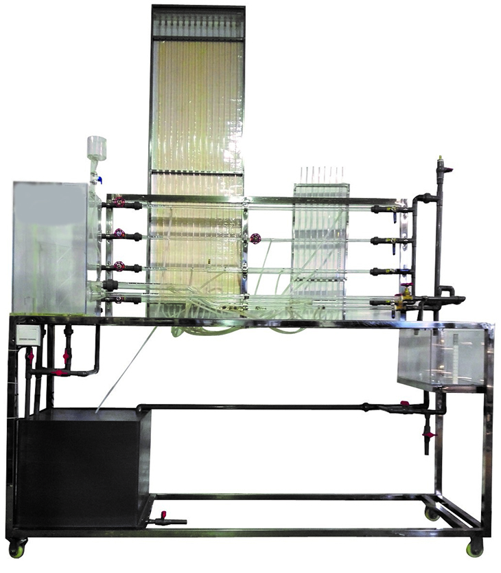 移動(dòng)式不銹鋼實(shí)驗臺、儲水箱;雷諾測試管;伯努利測試管;沿程阻力系數測試管;突擴、突縮測試管;閥門(mén)局部阻力系數測試管;孔板流量計測試管;文丘里流量計測試管;和皮托管測試管;測壓板直接顯示總水頭線(xiàn)和測壓管水頭線(xiàn);壓力傳感器24套、流量傳感器4套、溫度傳感器1套、觸摸屏、測壓板。