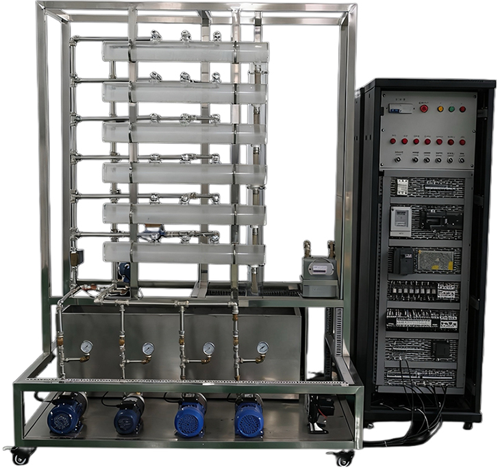 4.控制對象全部使用不銹鋼和有機玻璃器件,保證不生銹、不易老化;模擬六層大樓給水系統,具有有生活水系統和消防水系統兩種水路模型;動(dòng)力系統由四臺水泵構成,其中兩臺常規變頻循環(huán)泵,一臺休眠小泵,一臺消防泵,能夠模擬常規生活供水系統、消防供水系統和夜間小流量供水系統,能夠生動(dòng)模擬大樓給排水系統的典型結構。