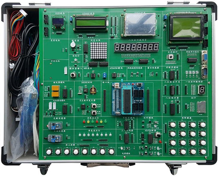 單片機實(shí)訓箱適用于研究生、本科、大專(zhuān)、職業(yè)技術(shù)學(xué)院及其中等專(zhuān)業(yè)技術(shù)學(xué)校的信息通信技術(shù)、應用電子技術(shù)、機電一體化、微機應用、數控技術(shù)、自動(dòng)化、計算機原理與應用、儀表及控制、汽車(chē)工程等電子應用和微機控制的相關(guān)專(zhuān)業(yè)。是《MCS-51 單片機原理與接口》《C8051 嵌入式單片機控制技術(shù)》《自動(dòng)化控制》《CPLD/FPGA 技術(shù)》等課程教學(xué)的最佳配套實(shí)驗設備。