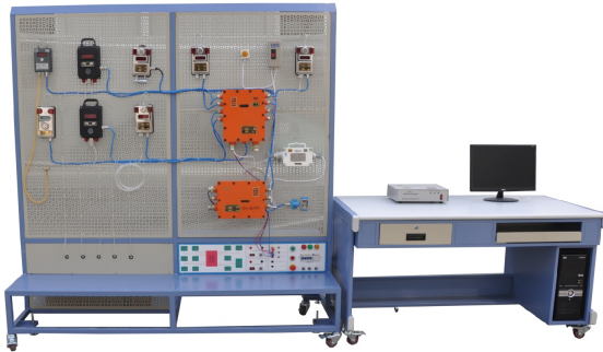 煤礦安全監控實(shí)訓系統隨著(zhù)科學(xué)技術(shù)的進(jìn)步,系統監測技術(shù)和各種安全監測系統裝備的相繼問(wèn)世,并在逐步取代簡(jiǎn)單的安全監測手段。煤礦安全監控系統主要用來(lái)監測甲烷濃度、一氧化碳濃度、氧氣濃度、硫化氫濃度、礦塵濃度、風(fēng)壓、負壓、溫度、饋電狀態(tài)、風(fēng)門(mén)狀態(tài)、風(fēng)筒狀態(tài)、局部通風(fēng)機開(kāi)停、主要通風(fēng)機開(kāi)停,并實(shí)現甲烷濃度超限聲光報警、斷電和甲烷閉鎖控制等功能。系統采用煤礦廣泛應用的煤礦監控軟件,全方位的實(shí)現煤礦生產(chǎn)中的主要信號參數的監測和安全保護控制功能。本裝置采用臺式結構,系統模塊大部分安裝在網(wǎng)孔板上,可培養學(xué)生的安裝、接線(xiàn)的操作技能,學(xué)生也可自行選擇部件,進(jìn)行系統設計,培養學(xué)生的設計、創(chuàng )新能力。