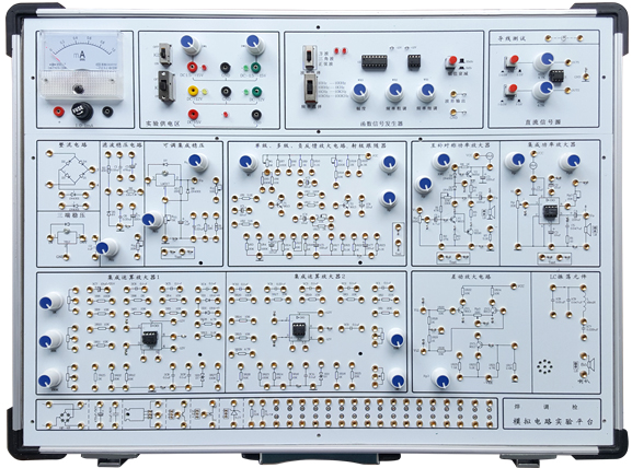 模擬電路實(shí)驗箱由鋁木合金箱體、高性能線(xiàn)性電源、和實(shí)驗電路板組成。其中實(shí)驗電路采用固定功能模塊方式,電路原理和元器件符號清晰,實(shí)驗用元器件可以焊裝在線(xiàn)路板的反面,安全可靠,不易損壞,也可以裝在線(xiàn)路板的正面,元件直觀(guān)可見(jiàn),感性認識強,正面還有實(shí)驗電路原理圖,使學(xué)生在實(shí)驗時(shí)對原理一目了然。