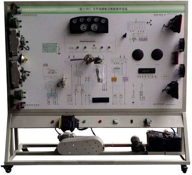 全車(chē)電路板試教板教學(xué)設備采用 全新 新款猛士181柴油機整車(chē)電器實(shí)物為基礎,充分展示汽車(chē)儀表系統、燈光系統、雨刮系統、喇叭系統、發(fā)動(dòng)機電器系統、起動(dòng)系統和充電系統等汽車(chē)電器各系統的組成結構和工作過(guò)程。