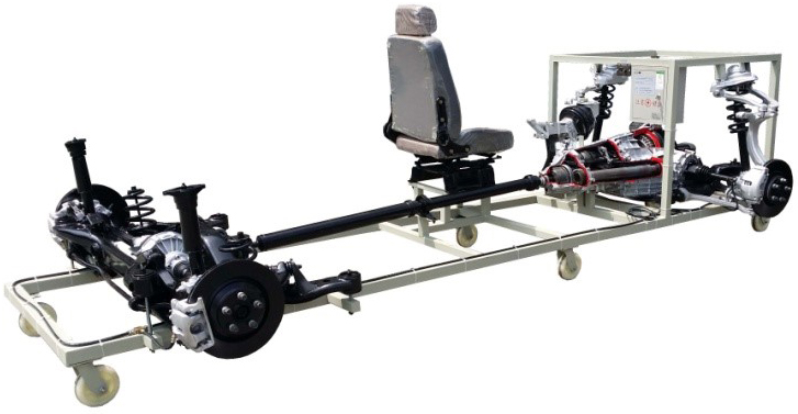 該設備采用CSK131東風(fēng)猛士裝甲突擊車(chē)四輪驅動(dòng)與傳動(dòng)系統(全時(shí)四輪驅動(dòng)鏈傳動(dòng)分動(dòng)器,帶軸間差速鎖)解剖實(shí)物為基礎,全面展示車(chē)輛四輪驅動(dòng)系統的組成結構。適合于車(chē)輛四輪驅動(dòng)系統理論教學(xué)和拆裝實(shí)訓的教學(xué)需要。