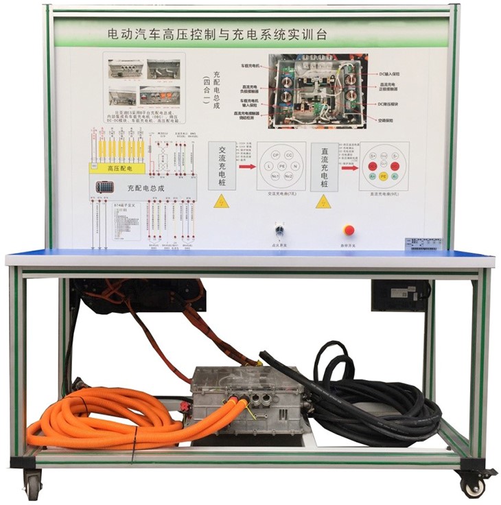 國標充電槍與充電座、(北汽EV160純電動(dòng)汽車(chē))高壓配電箱(帶各類(lèi)高壓繼電器)、漏電傳感器模塊、絕緣傳感器模塊、安全維修塞模塊、漏電模擬操作單元、高壓安全系統操作單元、操作控制臺、訓練控制按鈕、直流接觸器(包含充電繼電器、總正繼電器、總負繼電器、預充繼電器)、一體化全鋁合金型材搭建的移動(dòng)臺架(1500×700×1700mm 帶自鎖腳輪裝置,帶安裝檢測端子的原理面板,面板1448×940mm)、設備操作說(shuō)明書(shū)。