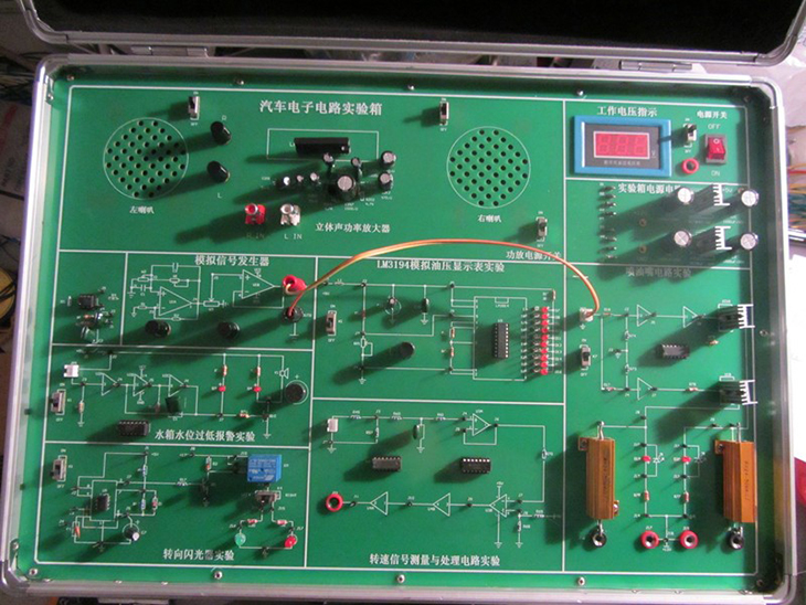汽車(chē)電子電路實(shí)驗箱結合汽車(chē)電學(xué)的典型基本電路,由淺到深地設計了二極管和三極管基本實(shí)驗、線(xiàn)性集成穩壓電源實(shí)驗、噴油器驅動(dòng)實(shí)驗、轉速信號測量與處理實(shí)驗、水箱水位過(guò)低報警實(shí)驗、轉向閃光器實(shí)驗等六個(gè)實(shí)驗項目,提供了一個(gè)給學(xué)生提高動(dòng)手能力,深入理解汽車(chē)電學(xué)基礎知識的實(shí)驗平臺。
