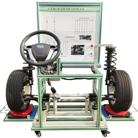 (比亞迪e5 純電動(dòng)汽車(chē)) 動(dòng)力轉向控制電腦(ECU)、診斷座、點(diǎn)火開(kāi)關(guān)、前橋懸掛機構、方向盤(pán)、轉向柱、電動(dòng)助力方機、轉向拉桿、前左右車(chē)輪總成、信號模擬裝置、扭矩傳感器、扭矩傳感器信號電壓數顯表、故障模擬與排除裝置、前輪左右轉盤(pán)、一體化全鋁合金型材搭建的移動(dòng)臺架(1500×1000×1700mm ,帶自鎖腳輪裝置,帶安裝檢測端子的原理面板948×898mm)、設備操作說(shuō)明書(shū)。