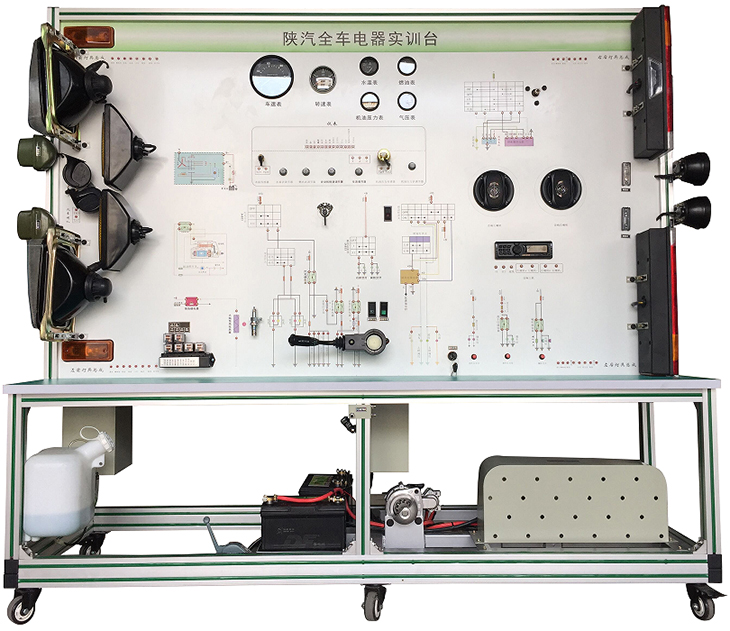 全車(chē)電路實(shí)訓臺、該設備采用陜汽SX2190柴油機整車(chē)電器實(shí)物為基礎,充分展示汽車(chē)儀表系統、燈光系統、雨刮系統、喇叭系統、發(fā)動(dòng)機電器系統、起動(dòng)系統和充電系統等汽車(chē)電器各系統的組成結構和工作過(guò)程。