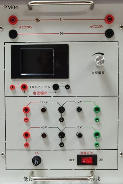 提供低壓交流電源(0V、6V、10V、14V抽頭各一路及中心抽頭17V兩路)、三極管(3DG6、3DG12、3CG12)、二極管(1N4007、1N4148)、穩壓塊(7812、7815、7915、LM317)、電阻、單結晶體管、蜂鳴器、電容等。配有相關(guān)實(shí)驗元器件。