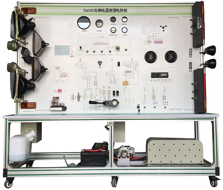 該設備采用泰安TA4360柴油機整車(chē)電器實(shí)物為基礎,充分展示汽車(chē)儀表系統、燈光系統、雨刮系統、喇叭系統、發(fā)動(dòng)機電器系統、起動(dòng)系統和充電系統等汽車(chē)電器各系統的組成結構和工作過(guò)程。