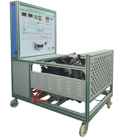 (比亞迪e5 EV450純電動(dòng)汽車(chē))電動(dòng)汽車(chē)空調壓縮機、膨脹閥總成、干燥器總成、鼓風(fēng)機總成、冷凝器、冷卻電子風(fēng)扇、電動(dòng)空調壓縮機控制器總成、空調蒸發(fā)箱總成、空調操作面板、直流接觸器、采暖模塊總成;高低壓空調壓力表、點(diǎn)火開(kāi)關(guān)、電源總開(kāi)關(guān)、急停開(kāi)關(guān)、一體化全鋁合金型材搭建的移動(dòng)臺架(1500×1000×1700mm ,帶自鎖腳輪裝置,帶安裝檢測端子的原理面板948×898mm)、故障模擬與排除裝置、設備操作說(shuō)明書(shū)。