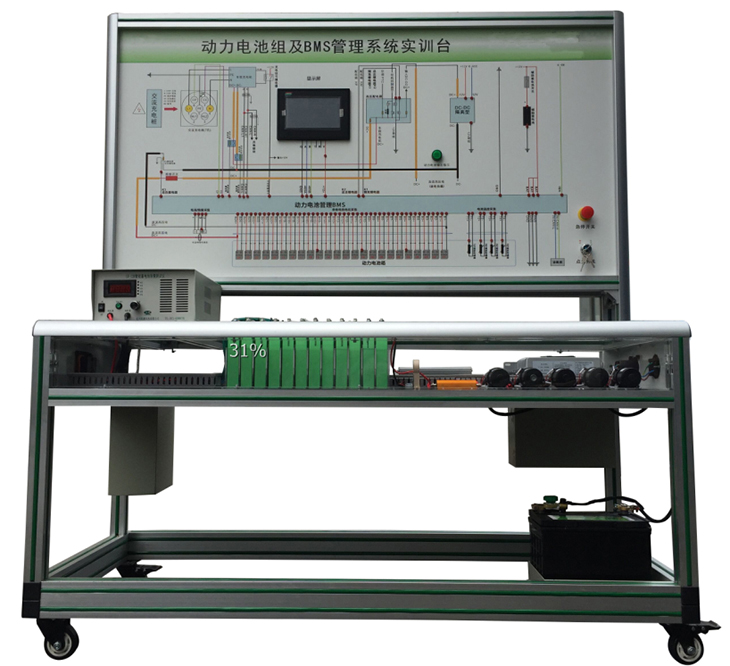 20AH,24串)、BMS鋰電管理一體機、動(dòng)力電池包觸摸顯示屏、車(chē)載充電機、國標充電插口、國標充電槍、緊急斷電開(kāi)關(guān)、霍爾電流傳感器、直流接觸器(包含充電繼電器、總正繼電器、總負繼電器、預充繼電器)、DC-DC轉換器(72V-12V30A)、輔助蓄電池(12V45AH)、放電控制繼電器與放電負載電阻、預充電阻器、可移動(dòng)實(shí)訓臺(1500×700×1700mm