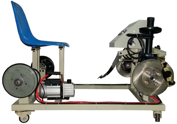 2.實(shí)訓臺安裝有真空泵,提供真空助力的動(dòng)力源;前后制動(dòng)管路上安裝有壓力表,實(shí)時(shí)顯示前后制動(dòng)分泵的壓力變化。
