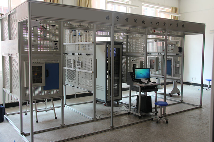 采用歐標40X40工業(yè)鋁型材框架,四周墻體采用1.5mm厚安裝布線(xiàn)網(wǎng)孔板組成(網(wǎng)孔布局為5X15mm,配工業(yè)標準塑制安裝孔件),4600mm×2300mm×2400mm(長(cháng)×寬×高),實(shí)訓平臺分為管理中心、智能小區、智能大樓和樓道等區域。 |