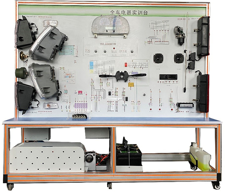 在車(chē)身電器基礎上,配備各相關(guān)輔助控制裝置,可如原車(chē)一樣實(shí)際工作。在操縱實(shí)訓臺上的各種電器開(kāi)關(guān)、按紐,真實(shí)演示汽車(chē)燈光系統、照明系統、儀表系統、雨刮系統、點(diǎn)火系統、起動(dòng)系統、充電系統、音響系統的工作過(guò)程。