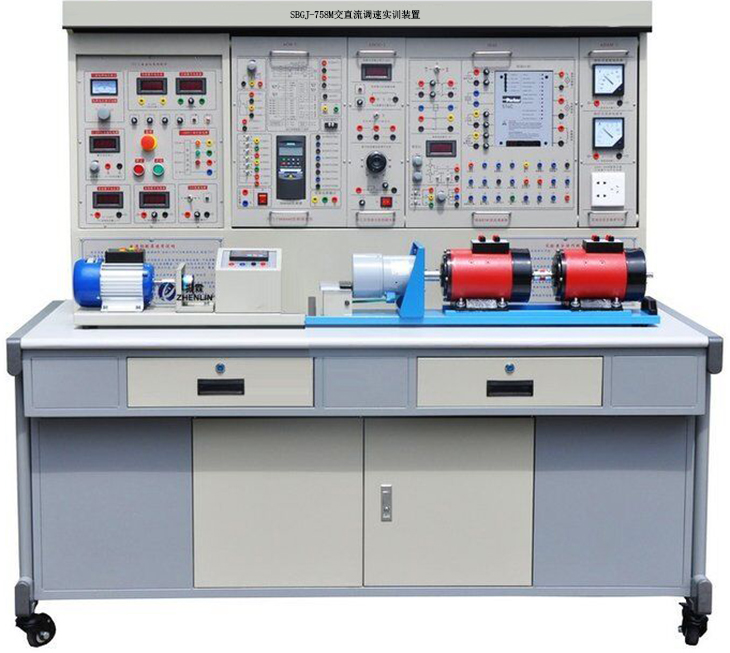 交直流調速實(shí)訓裝置是依據《電力拖動(dòng)自動(dòng)控制系統》、《直流調速》、《交流變頻調速》、《高級維修電工(交直流調速部分)》教材大綱的要求,為配合高等院校、職業(yè)培訓技術(shù)院校相關(guān)專(zhuān)業(yè)進(jìn)行的課程實(shí)驗而推出的一套現代化綜合電機及驅動(dòng)系列實(shí)訓產(chǎn)品。交直流調速實(shí)驗裝置主要訓練和考核學(xué)員對交流變頻器和直流調速裝置的參數設置和系統應用能力,通過(guò)對交流變頻器控制電路和所控制電機負載的精心設計,使學(xué)員通過(guò)實(shí)驗掌握交流電動(dòng)機變頻控制各種典型的工作狀態(tài);通過(guò)對直流調速裝置主回路、控制回路和直流電動(dòng)機負載的精心設計,使學(xué)員通過(guò)實(shí)訓掌握直流電動(dòng)機調速各種典型的工作狀態(tài)。