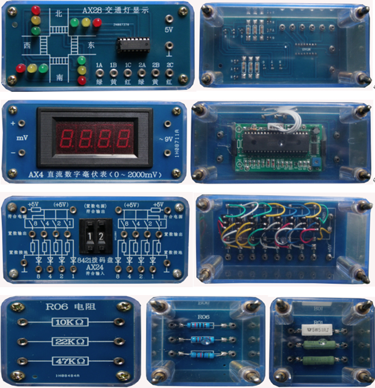 (透明電子創(chuàng )新元件模塊示例圖,140多只透明有機塑料封閉元件盒)