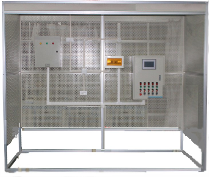 由模擬房間、卷簾門(mén)、卷簾門(mén)控制柜、火災報警控制器、火災探測器、以及相應的聯(lián)動(dòng)控制系統組成