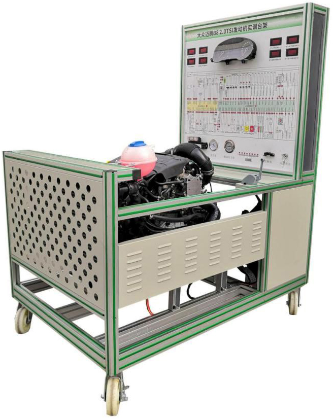 該設備采用翻新新一代邁騰B8 2.0T 電控汽油發(fā)動(dòng)機總成及運行附件的固定臺架和運行檢測控制面板臺架兩部分組成。