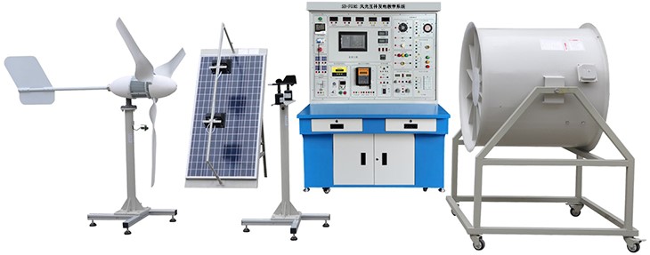 風(fēng)光互補發(fā)電測量系統主要由風(fēng)力發(fā)電機組、太陽(yáng)能光伏電池組、控制器、蓄電池、逆變器、交流直流負載、開(kāi)關(guān)控制模塊、環(huán)境監測模塊、儀表顯示等部分組成,通過(guò)觸摸屏和變頻器作為控制核心,帶有A/D、D/A模塊、模擬量輸入/輸出模塊、交流電機變頻調速系統。系統于風(fēng)能發(fā)電、光伏發(fā)電為一體的教學(xué)實(shí)訓系統;各系統通過(guò)連接電纜進(jìn)行連接,形成一套可完成風(fēng)力及光伏發(fā)電、同步并網(wǎng)、離網(wǎng)電源的實(shí)驗及教學(xué)演示。幫助學(xué)生理解太陽(yáng)能并網(wǎng)、離網(wǎng)及風(fēng)力發(fā)電系統的原理,從而起到學(xué)習工程實(shí)際應用技能的作用。