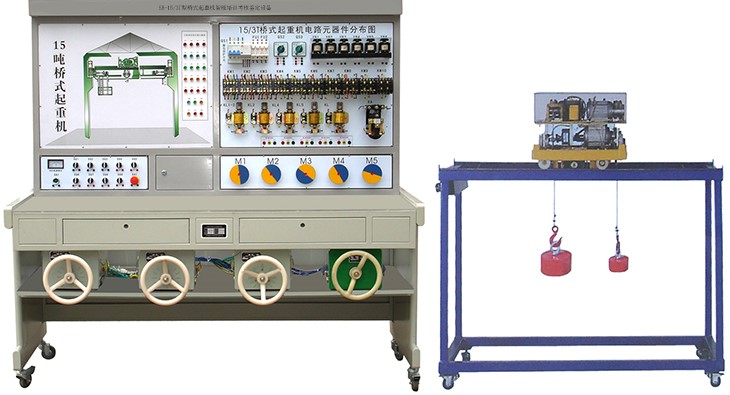 橋式起重機智能培訓考核鑒定設備、機床電氣技能培訓考核實(shí)驗裝置,是為各大、中專(zhuān)院校、職業(yè)學(xué)校的電氣、自動(dòng)化及相關(guān)專(zhuān)業(yè)、社會(huì )電工培訓、各縣市維修電工鑒定所(站)等單位電氣控制內容的教學(xué)、考核而研制的,可用于課堂演示、機床電氣控制原理性操作及實(shí)驗實(shí)習。裝置人為隱蔽地設置了幾十項電路故障,學(xué)生借助原理分析,全方位真實(shí)的機床電氣故障排除訓練,是進(jìn)行技能培訓考核的理想設備,教學(xué)效果顯著(zhù)。