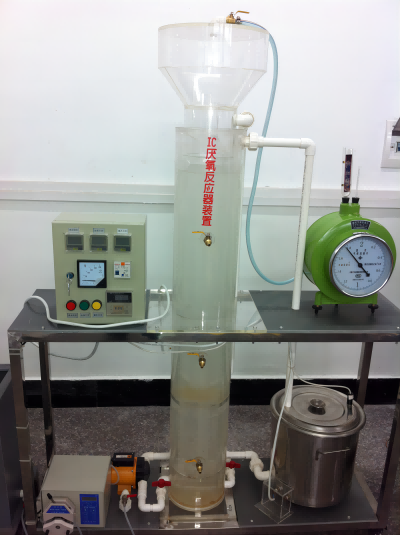 IC厭氧反應器裝置1套,其上有進(jìn)水閥、排泥閥、出水閥、氣閥等。配套有不銹鋼加熱恒溫水浴1套、數字溫度控制儀1臺、溫度控制系統1套(BT-100、0-100C)、計量泵1臺(BT-100、輸出流量1-6800ml/h、輸出壓力≥3kg/cm2、輸出通道、單通道)、循環(huán)水泵1臺、沼氣流量計1臺 、可編程自動(dòng)控制1套、取樣口1批、廢水水箱1只、電控箱1只、漏電保護開(kāi)關(guān)、按鈕開(kāi)關(guān)、連接管道和球閥、不銹鋼臺架等組成。
