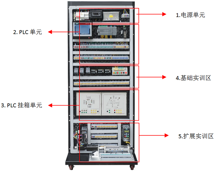 實(shí)訓單元組成:網(wǎng)孔板實(shí)訓區主要由電源單元、PLC單元、PLC學(xué)習箱單元、基礎實(shí)訓單元、小車(chē)運動(dòng)單元、變頻器單元等組成。