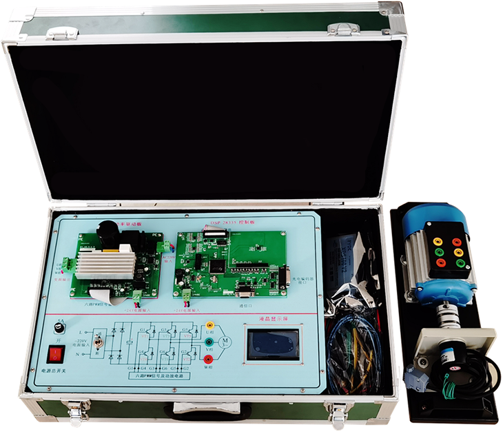 本實(shí)驗系統是基于德州儀器TI公司的28335型C2000系列DSP而設計的高性能矢量控制變頻調速系統。系統由實(shí)驗箱(含DSP控制板、IPM智能功率驅動(dòng)模塊和24V開(kāi)關(guān)電源)、XDS100V2-USB2.0仿真器,三相鼠籠式異步電動(dòng)機,增量式光電編碼器,聯(lián)軸器,固定電機導軌等組成。