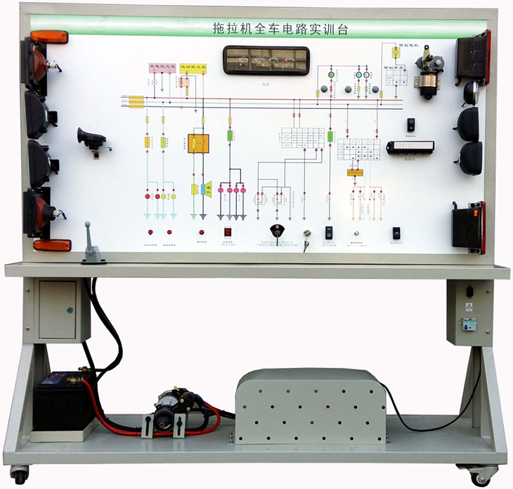 該設備采用全新DF-1204-8拖拉機整車(chē)電器實(shí)物為基礎,充分展示儀表系統、燈光系統、喇叭系統、發(fā)動(dòng)機電器系統、起動(dòng)系統和充電系統等電器各系統的組成結構和工作過(guò)程。