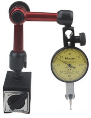 百分表是利用精密齒條齒輪機構制成的表式通用長(cháng)度測量工具。通常由測頭、量桿、防震彈簧、齒條、齒輪、游絲、圓表盤(pán)及指針等組成。把百分表安裝在機器人J6法蘭上,通過(guò)機器人的不同位置的循環(huán)運動(dòng),可快速的測試機器人重復精度。