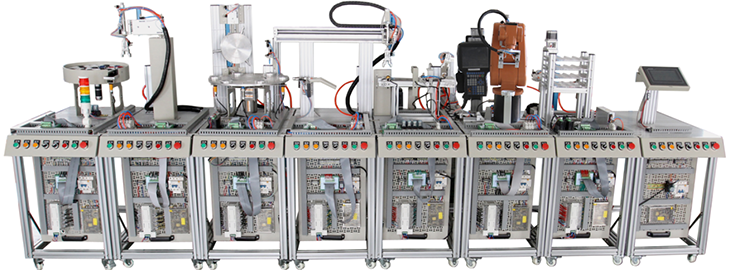 模塊式柔性自動(dòng)化生產(chǎn)線(xiàn)實(shí)訓系統八個(gè)工作站各自都有一套PLC主機,可分成八個(gè)完全獨立的工作站進(jìn)行實(shí)訓,在對各單元生產(chǎn)工藝和電氣控制系統的構成熟悉后,通過(guò)PLC編程可完成: