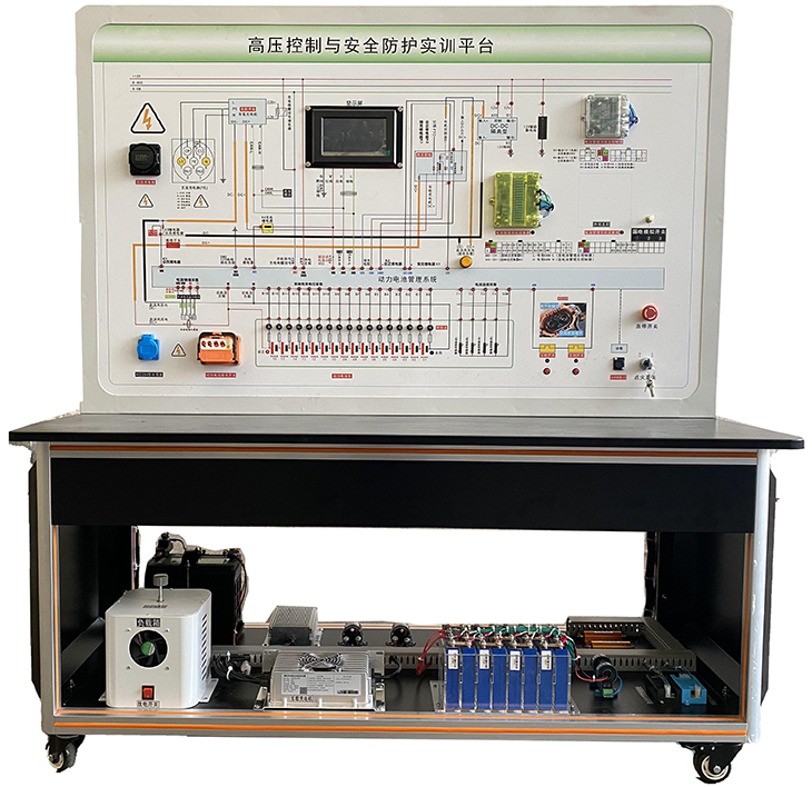 2.安裝有點(diǎn)火開(kāi)關(guān)、電動(dòng)汽車(chē)真實(shí)鋰電池組及BMS系統,電動(dòng)汽車(chē)安全維修塞插頭模塊,高壓電路仿真系統,安全繼電器組件,漏電保護模塊與模擬操縱開(kāi)關(guān)。