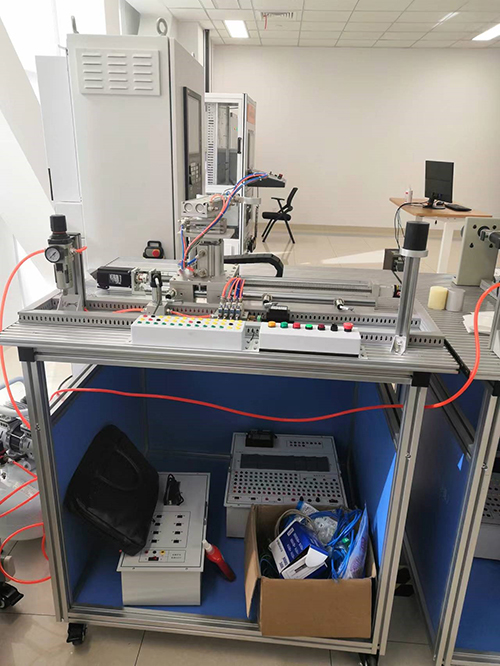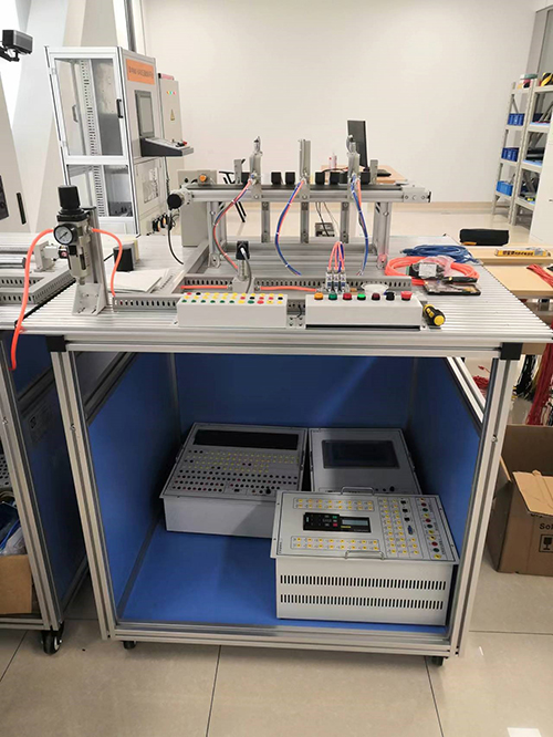 實(shí)訓桌為鐵質(zhì)雙層亞光密紋噴塑結構,桌面為防火、防水、耐磨高密度板、結構堅固,造型美觀(guān)大方。桌子左右各設有兩個(gè)抽屜(帶鎖),并帶有柜子,分別可放置掛件和實(shí)訓物品底部裝有4個(gè)導向輪,方便實(shí)訓臺架移動(dòng), 分揀模塊、機械手模塊、三軸運動(dòng)、機械傳動(dòng)模塊可以放置在實(shí)訓臺上,整體結構為開(kāi)放式和可拆裝式。外形尺寸為:2500mm×700mm×1500 mm。