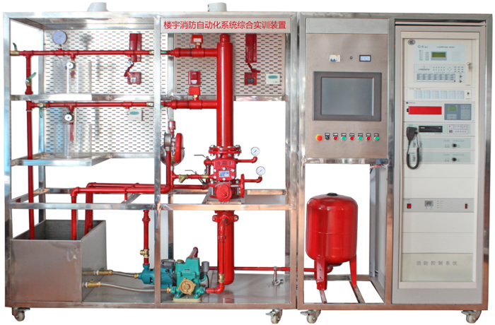 2、消防給水系統:主要有給水箱、噴淋泵、穩壓罐、濕式報警閥、壓力開(kāi)關(guān)、水流指示器、消防給水管道、閉式噴淋頭等組成。管路采用鍍鋅管進(jìn)行設計,可進(jìn)行鍍鋅管的切割、套絲、安裝和通水試驗操作,通過(guò)控制系統可實(shí)現噴淋滅火功能。