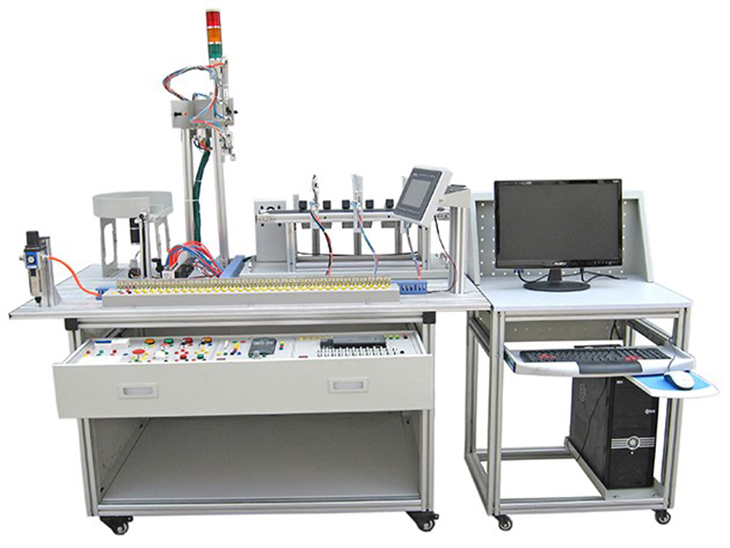 光機電一體化實(shí)訓考核裝置、光機電一體化實(shí)訓考核設備是一種最為典型的機電一體化產(chǎn)品,是為職業(yè)院校、職業(yè)教育培訓機構而研制的,適合機電一體化、電氣自動(dòng)化等相關(guān)專(zhuān)業(yè)的教學(xué)和培訓。光機電一體化實(shí)訓考核裝置它在接近工業(yè)生產(chǎn)制造現場(chǎng)基礎上又針對教學(xué)及實(shí)訓目的進(jìn)行了專(zhuān)門(mén)設計,強化了機電一體化的安裝與調試能力。光機電一體化實(shí)訓考核裝置由導軌式型材實(shí)訓臺、機電一體化設備部件、電源模塊、按鈕模塊、PLC模塊、變頻器模塊、交流電機模塊、步進(jìn)電機及驅動(dòng)器模塊、模擬生產(chǎn)設備實(shí)訓單元(包含上料機構、搬運機械手、皮帶輸送線(xiàn)、物件分揀等)和各種傳感器等組成。采用開(kāi)放式和拆裝式結構設計,可根據現有的機械部件組裝生產(chǎn)設備,使整個(gè)裝置能夠靈活的按實(shí)訓教學(xué)需要組裝機電一體化設備。裝置采用工業(yè)標準結構設計及抽屜式模塊放置架,組合方便?刂茖ο缶捎玫湫蜋C電設備部件,接近工業(yè)現場(chǎng)環(huán)境,滿(mǎn)足實(shí)訓教學(xué)或技能競賽需求。