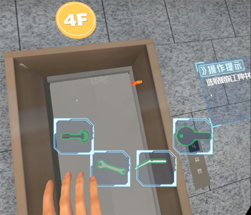在使用系統的過(guò)程中,可根據操作提示,在正確的工具或物料中選擇,并放置在正確的位置上?墒褂檬直M(jìn)行物體之間的交互,體驗真實(shí)場(chǎng)景中的工作過(guò)程。