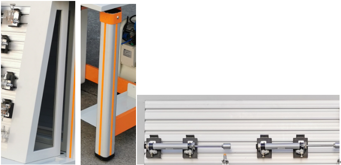 1.實(shí)驗臺架:實(shí)驗臺架規格為1600(長(cháng))*700(寬)*1760(高),實(shí)驗臺架主體結構全部采用高性能表面氧化的鋁型材及一次成型鋁壓鑄框架連接構件,連接構件采用壓鑄成型工藝(非焊接工藝),經(jīng)機加工、拋丸、噴砂、表面靜電噴涂工藝,安裝方便、快捷,用戶(hù)可自行DIY組裝。桌體立柱采用工業(yè)鋁型材成型工藝,表面氧化處理,截面尺寸:70×70mm,四面帶槽,槽寬約8mm,端部配套模具成型塑料堵頭。桌面采用25mmE1級三聚氰胺飾面板,桌面板下設支撐框架,承受力不少于200kg。配備儲存柜,存放實(shí)訓掛箱等,儲存柜底部4只高強度萬(wàn)向可制動(dòng)PU腳輪,方便移動(dòng)。實(shí)驗臺架整體簡(jiǎn)約不簡(jiǎn)單,高端大氣,符合現代化產(chǎn)品審美和發(fā)展趨勢。